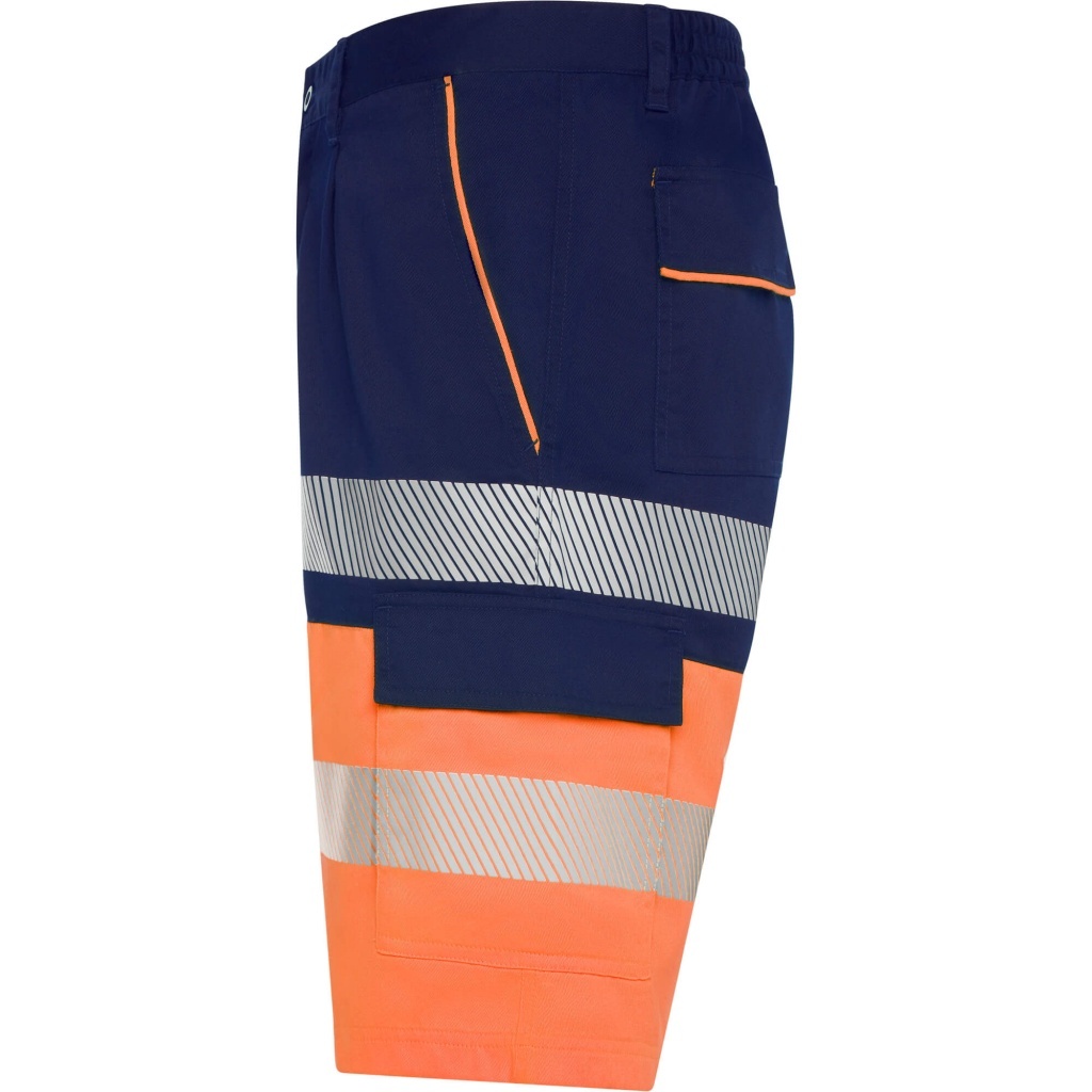 High-visibility, two-tone work shorts featuring multiple functional pockets.