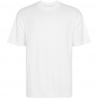 Thick oversized T-shirt with short sleeves. Features a wide, ribbed, round 2x1 neckline, tape covering the stitching on the back of the neck made from matching fabric, and wide double stitching on the sleeves and hem.