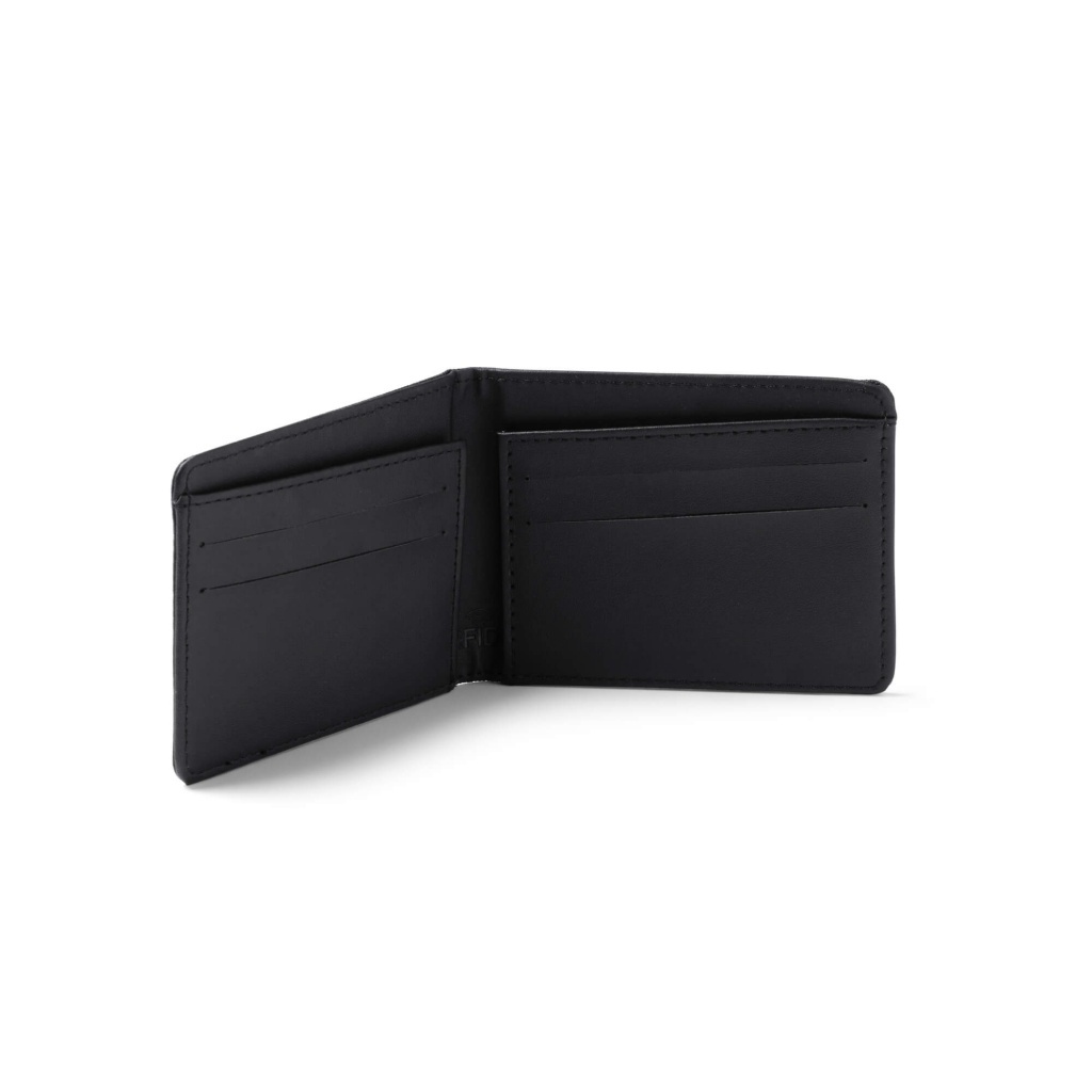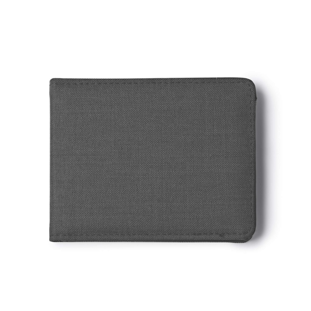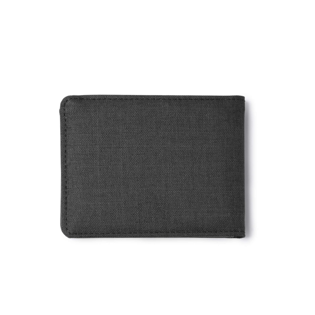 Card case crafted from recycled RPET polyester with an RFID security system. Interior features 6 card compartments.