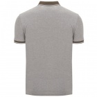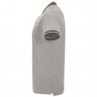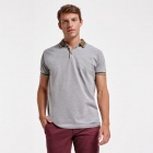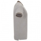 Polo Vigore z krótkim rękawem. Dekolt w jednolitym kolorze z kontrastowym, dekoracyjnym akcentem. Wewnętrzna część plisy wykończona kontrastową ozdobną taśmą i trzema guzikami. Prążkowane mankiety z kontrastowymi detalami. Boczne rozcięcia ozdobione taśmą. Tył jest nieco dłuższy niż przód.