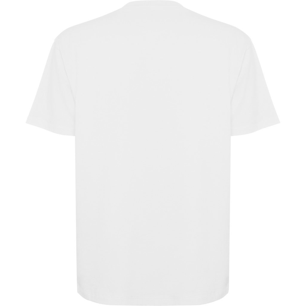 Koszulka o kroju oversize z krótkim rękawem. Okrągły dekolt wykończony ściągaczem 2x1 z przykrytymi szwami w tym samym kolorze materiału. · Boczne szwy. Szerokie podwójne przeszycia na rękawach i obszyciu.