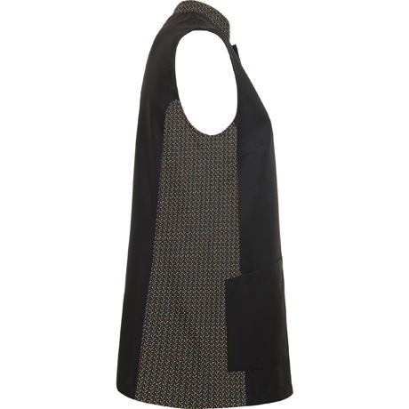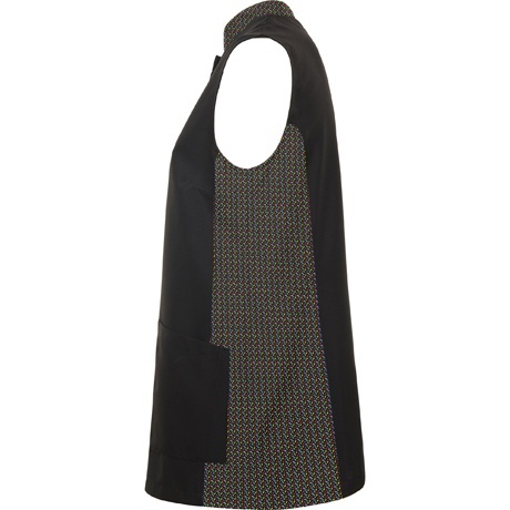 - Kołnierzyk, boczne panele i plisy na piersi.