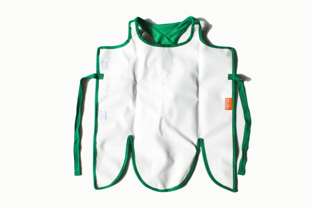 Kaprony to innowacyjne fartuchy łatwe do przekształcenia w pelerynę. Fartuch powlekany PU jest prosty w czyszczeniu. Peleryny są jasne, miękkie i elastyczne. Zarówno fartuch, jak i peleryna leżą wygodnie na ramionach — dzięki konstrukcji z dwoma elastycznymi paskami pod ramionami nie zsuwają się z szyi ani ramion. Zapięcia na rzepy ułatwiają dzieciom założenie fartucha i szybkie przekształcenie go w pelerynę.
