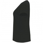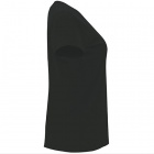 Damska koszulka z krótkim rękawem. Okrągły prążkowany dekolt 1x1. Dopasowany krój. Wzmocnione, kryte szwy przy kołnierzyku.