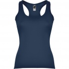 Dopasowany damski top. Dekolt i ramiona wykończone lamówką. Tył w stylu pływackim. Szwy boczne.