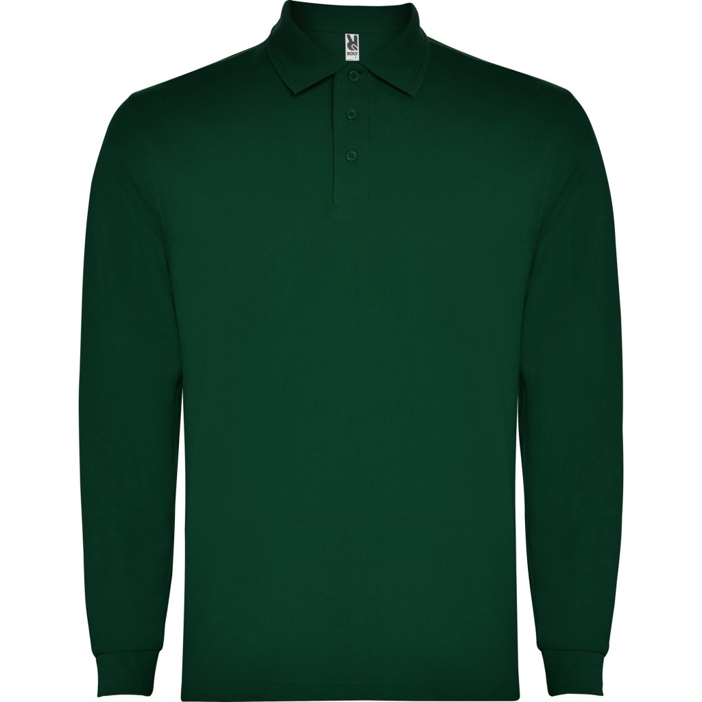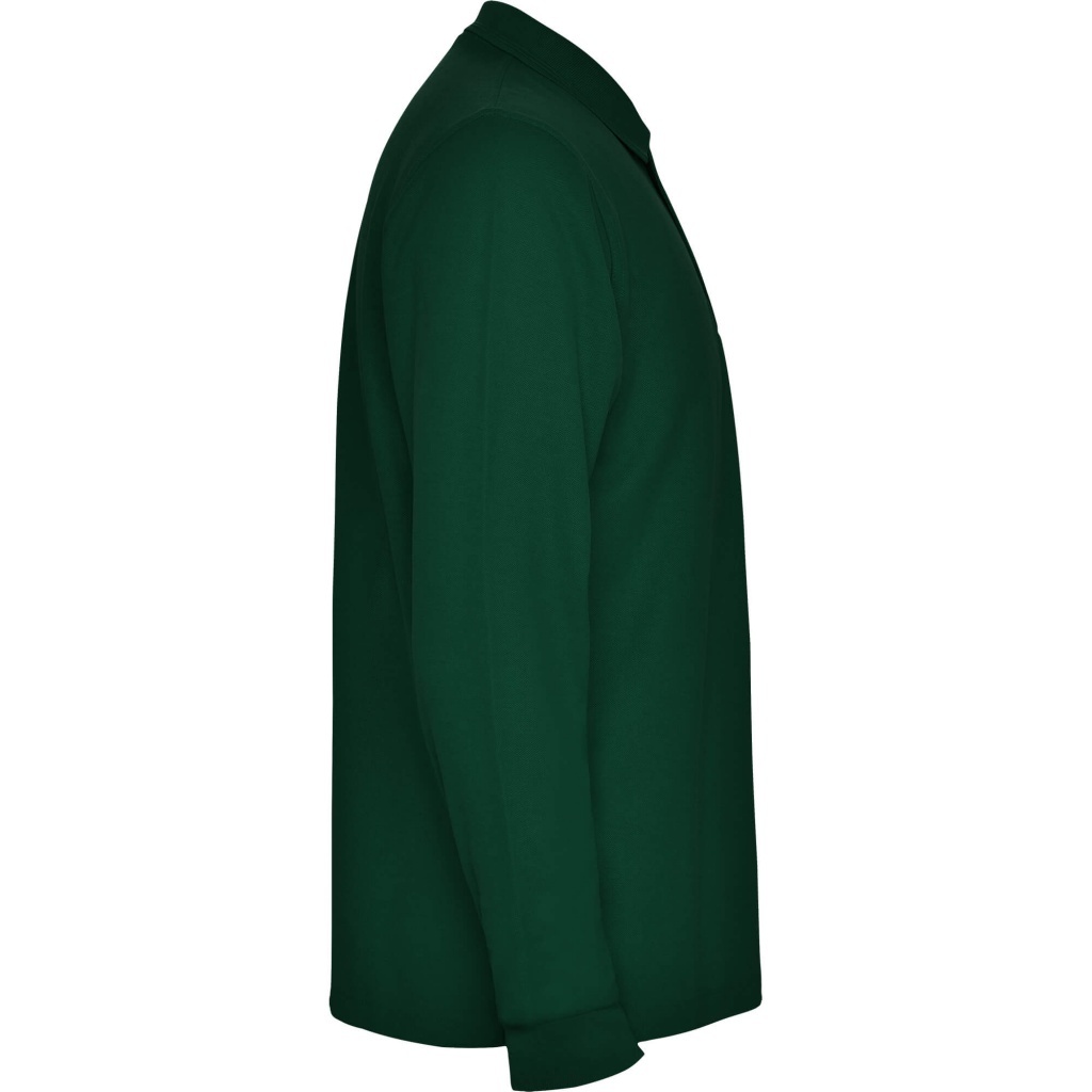Koszulka polo z długim rękawem. Zapięcie na trzy guziki (dwa guziki w modelu dziecięcym). Prążkowany kołnierzyk i mankiety. Wzmocnione, kryte szwy przy kołnierzyku. Boczne rozcięcia. Elastyczne ściągacze przy mankietach.