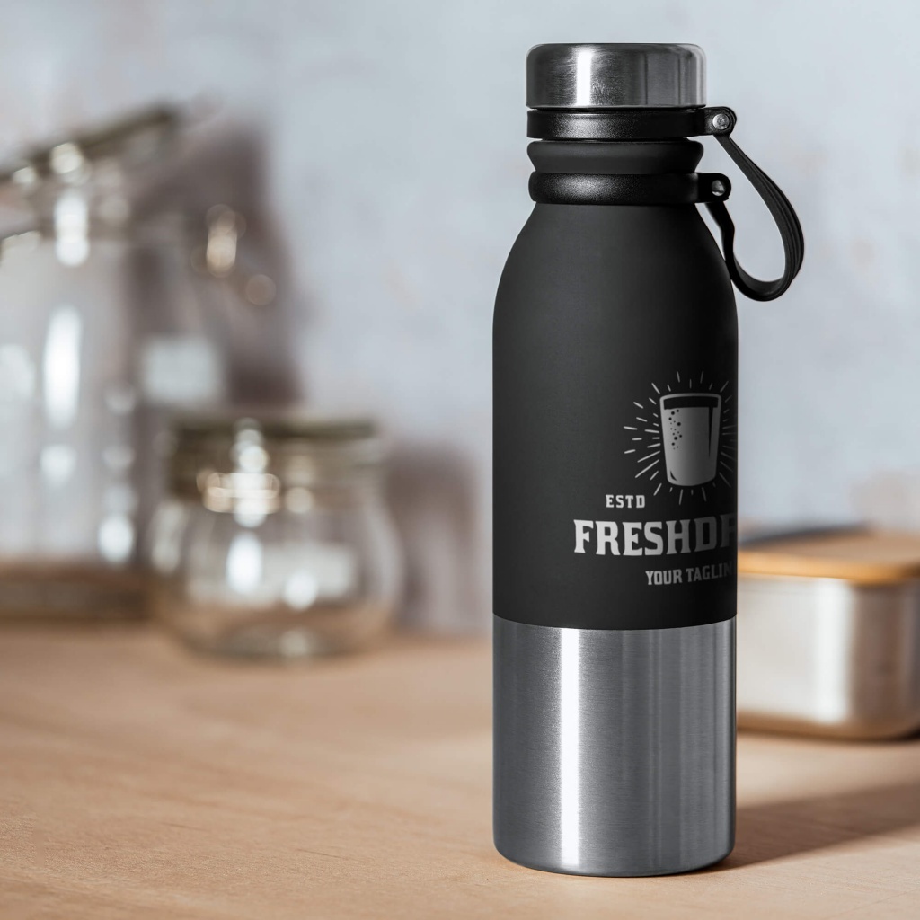 Butelka ze stali nierdzewnej o dwukolorowym korpusie w matowym wykończeniu.