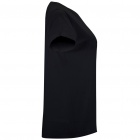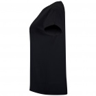 Damska koszulka z krótkim rękawem o klasycznym, okrągłym dekolcie wykonanym z tej samej dzianiny. Szwy na karku zostały wzmocnione i ukryte w kolorze materiału, a podwijane rękawki mają dodatkowe wzmocnienie w czterech punktach, co zwiększa trwałość.