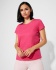 Damska koszulka z krótkim rękawem o klasycznym, okrągłym dekolcie wykonanym z tej samej dzianiny. Szwy na karku zostały wzmocnione i ukryte w kolorze materiału, a podwijane rękawki mają dodatkowe wzmocnienie w czterech punktach, co zwiększa trwałość.