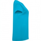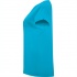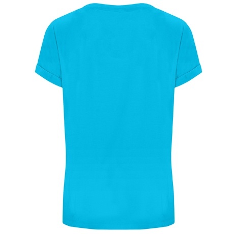 Damska koszulka z krótkim rękawem o klasycznym, okrągłym dekolcie wykonanym z tej samej dzianiny. Szwy na karku zostały wzmocnione i ukryte w kolorze materiału, a podwijane rękawki mają dodatkowe wzmocnienie w czterech punktach, co zwiększa trwałość.