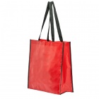 Torba wielokrotnego użytku z błyszczącym laminatem. Wytrzymały materiał, wzmocnione nylonowe uchwyty oraz dopasowana czarna lamówka zapewniają trwałość i estetyczny wygląd.