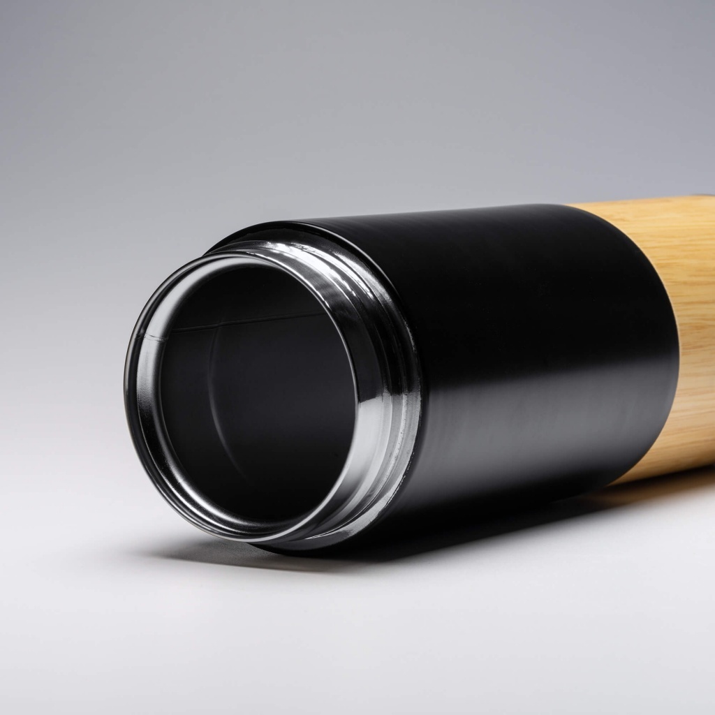 Termos wykonany ze stali nierdzewnej 304 z podwójnymi ściankami i bambusowymi elementami. Doskonały do przechowywania zarówno zimnych, jak i gorących napojów.