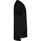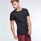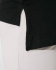 Koszulka z krótkim rękawem i przedłużanym tyłem, dekolt wykończony dwiema warstwami tkaniny z dodatkiem elastanu. Boczne rozcięcia u dołu koszulki.