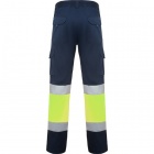 Długie spodnie robocze z licznymi kieszeniami, dobrze widoczne z daleka.