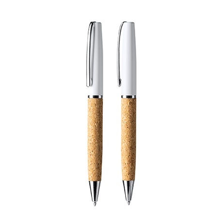 Przekręcany długopis z korpusem z naturalnego korka oraz elementami stalowymi. Elementy detaliczne pokryte chromem.
