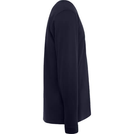 Koszulka z długim rękawem wykonana z tkaniny trudnopalnej. Okrągły dekolt wykończony ściągaczem oraz zakończenia rękawów z dzianiny prążkowanej 1x1. Produkt z bocznymi szwami.