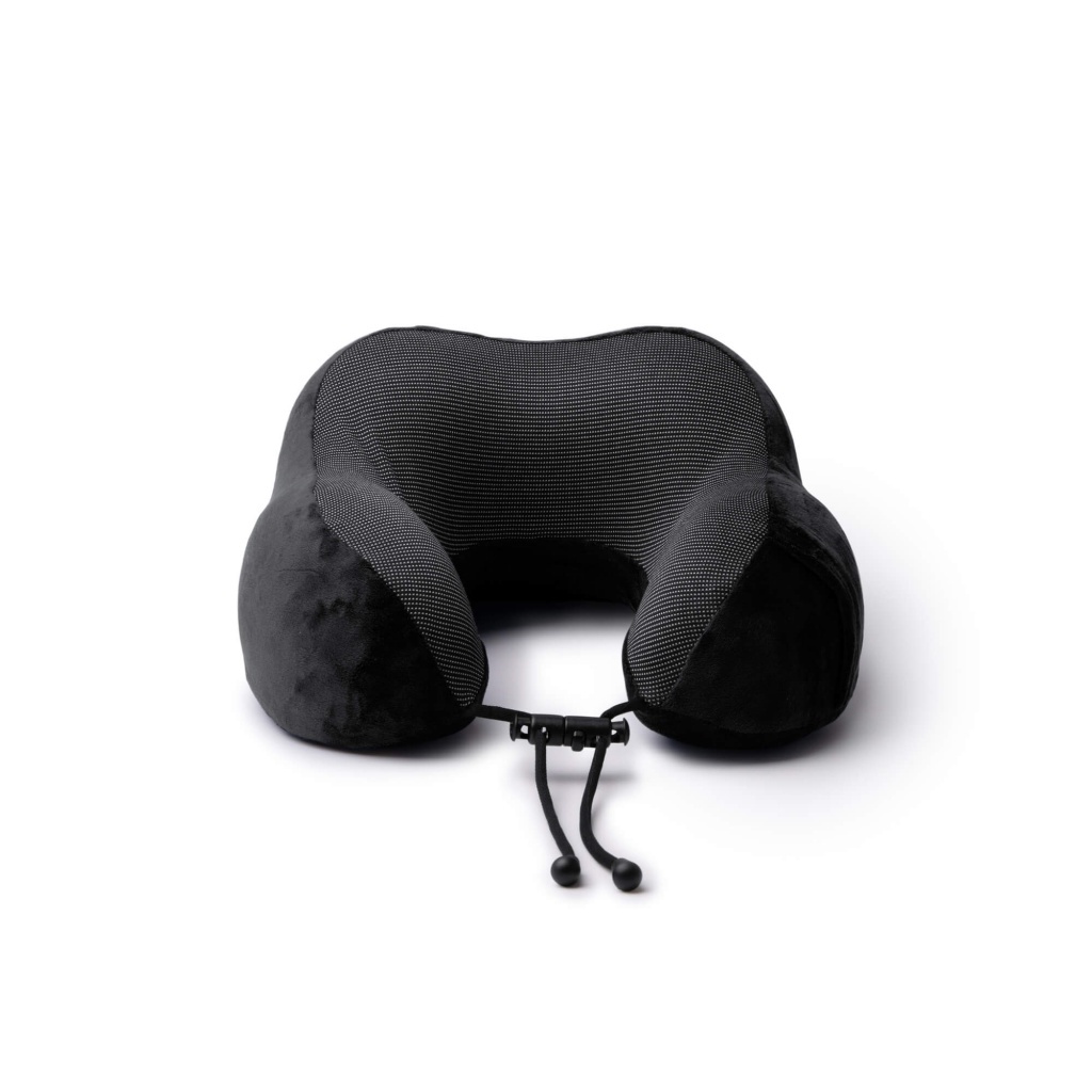 Poduszka podróżna z poliestru o pamięci strukturalnej — po każdym użyciu wraca do pierwotnego kształtu. Zapewnia anatomiczne dopasowanie do sylwetki użytkownika, co zwiększa komfort podczas podróży. Wyposażona w regulowany ściągacz, który można odczepić, ułatwiając ergonomiczne dopasowanie poduszki.