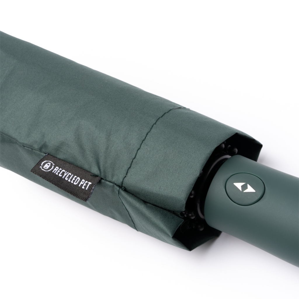 Składany parasol wykonany z tkaniny RPET z ochroną przed promieniowaniem UV. Mechanizm automatycznego otwierania i zamykania. Materiał pongee 190T ze wskaźnikiem ochrony SPF50. Stelaż z prętów z włókna szklanego. Odporność na śnieg i wodoodporność. Zapięcie na rzep. Do zestawu dołączone pasujące etui.