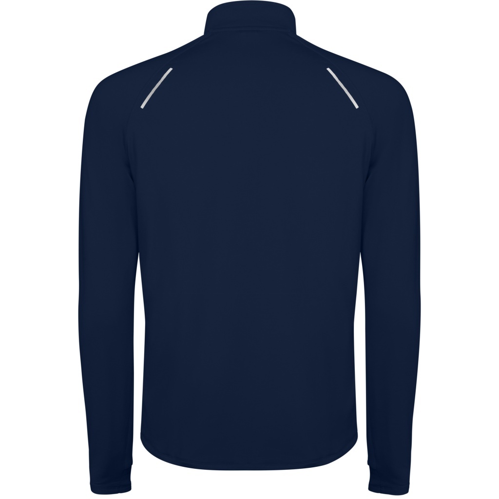 Raglanowa, techniczna bluza dresowa z długim rękawem, zapinana na pół zamka, z odblaskowymi detalami w kołnierzu i wstawkami na plecach. Bluza ma wzmocnione szwy, mankiety z otworami na kciuki oraz tylną część nieco dłuższą niż przednia; wnętrze uszyte z ocieplonego materiału.