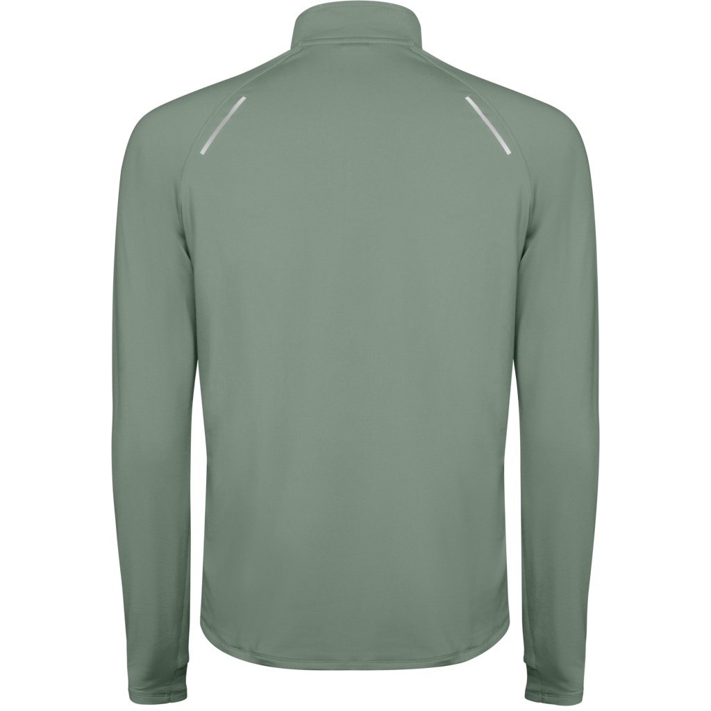 Raglanowa, techniczna bluza dresowa z długim rękawem, zapinana na pół zamka, z odblaskowymi detalami w kołnierzu i wstawkami na plecach. Bluza ma wzmocnione szwy, mankiety z otworami na kciuki oraz tylną część nieco dłuższą niż przednia; wnętrze uszyte z ocieplonego materiału.