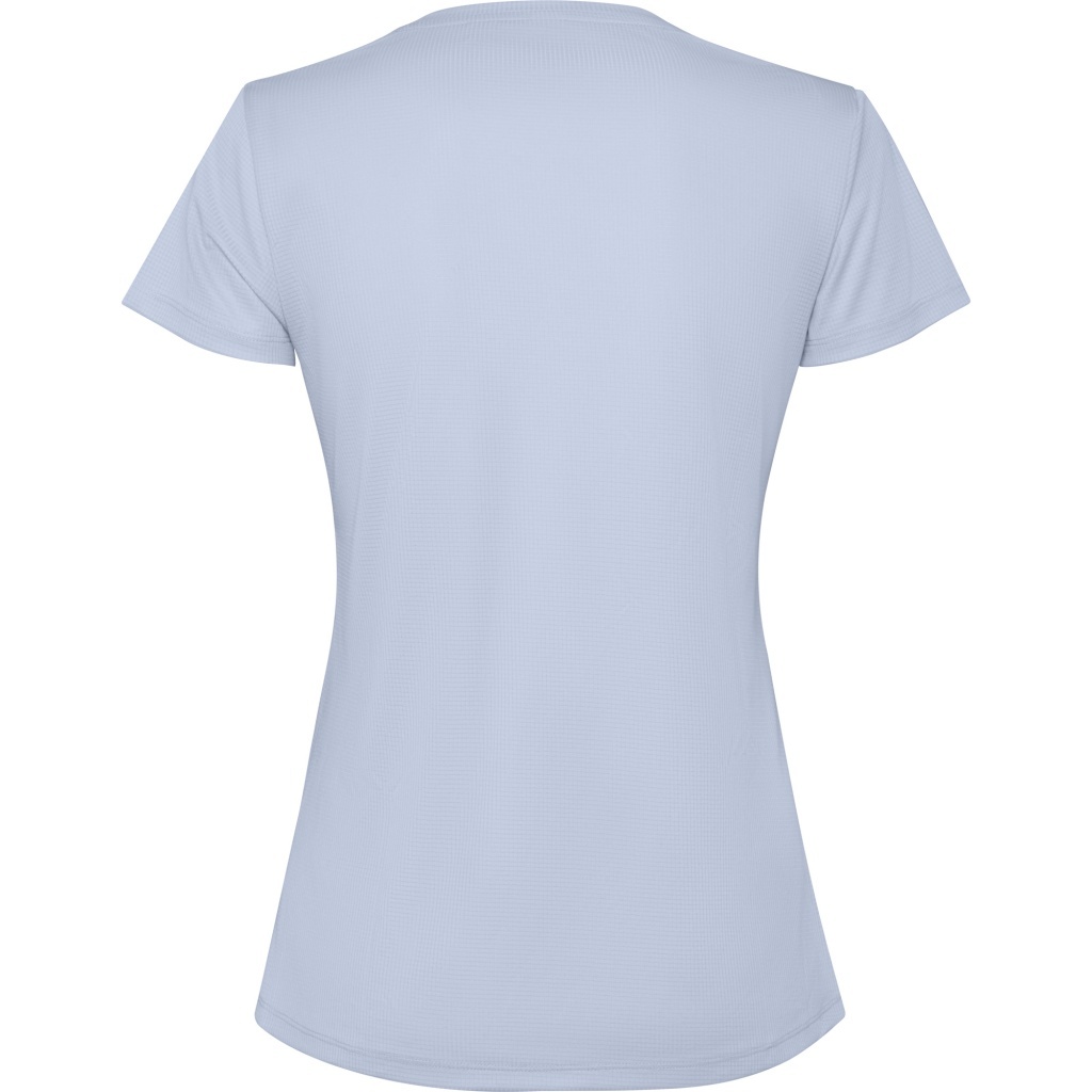 Damska, dopasowana koszulka techniczna z krótkim rękawem. Szyte szwy w kołnierzu pokryte w tym samym kolorze. Tył koszulki jest nieco dłuższy niż przód, a boczne szwy przesunięto do przodu, co poprawia dopasowanie.