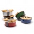 Metalowy pojemnik na lunch z trwałą powłoką ceramiczną oraz bambusową pokrywką, zabezpieczoną elastyczną opaską dla zachowania szczelności i bezpieczeństwa żywności. W komplecie praktyczny bambusowy zestaw sztućców. Pojemność 750 ml czyni go idealnym rozwiązaniem do przenoszenia zdrowych posiłków — elegancki i funkcjonalny, sprawdzi się w biurze, szkole i podczas codziennych wyjść.