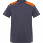 Kolorowa koszulka z krótkim rękawem, z okrągłym dekoltem wykończonym kontrastową wewnętrzną obwódką. Kontrastowe wstawki na ramionach oraz dopracowane detale.