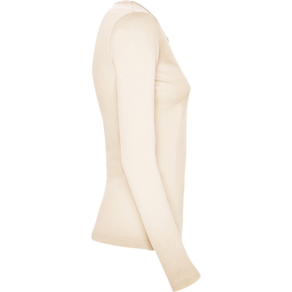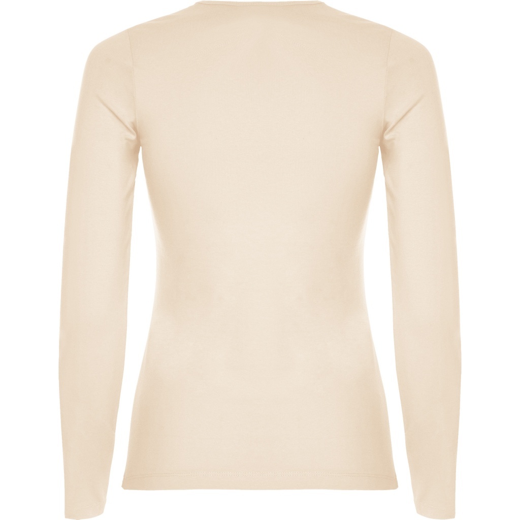 Damska koszulka z długim rękawem o dopasowanym kroju. Bez mankietów. Posiada szwy boczne.