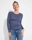 Damska koszulka z długim rękawem o dopasowanym kroju. Bez mankietów. Posiada szwy boczne.