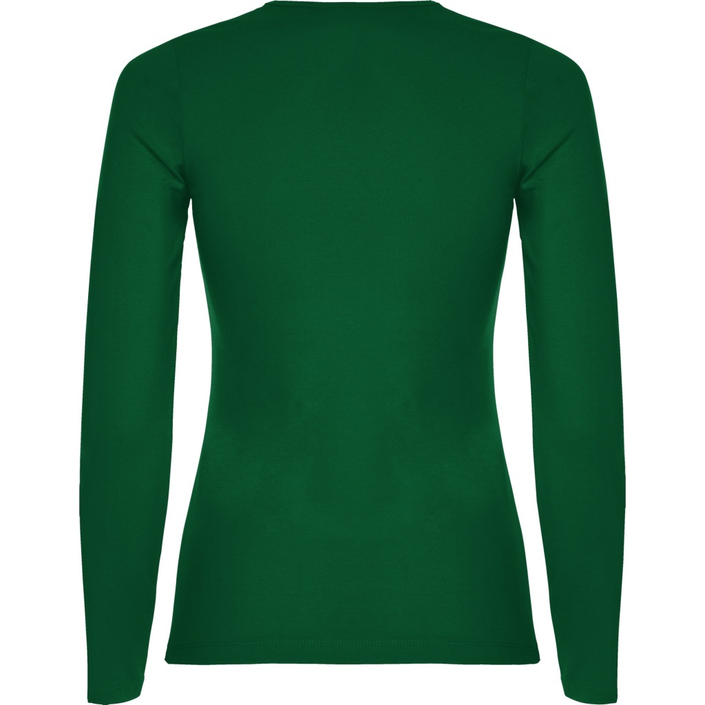 Damska koszulka z długim rękawem o dopasowanym kroju. Bez mankietów. Posiada szwy boczne.