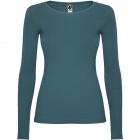 Damska koszulka z długim rękawem o dopasowanym kroju. Bez mankietów. Posiada szwy boczne.