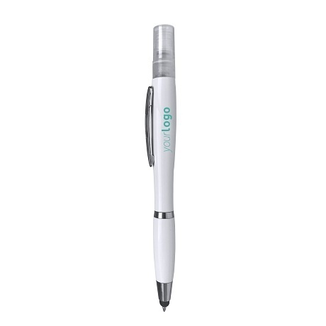 Antybakteryjny długopis wyposażony w atomizer oraz rysik do ekranów dotykowych.