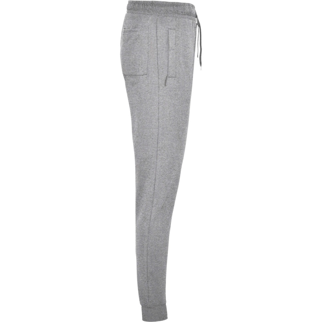 Długie spodnie dresowe z regulowanym ściągaczem w pasie. Nogawki zwężane u dołu. Wzmocnione szwy. Kieszenie boczne zamykane na suwak oraz tylna kieszeń wykończona lamówką. Tkanina oddychająca.