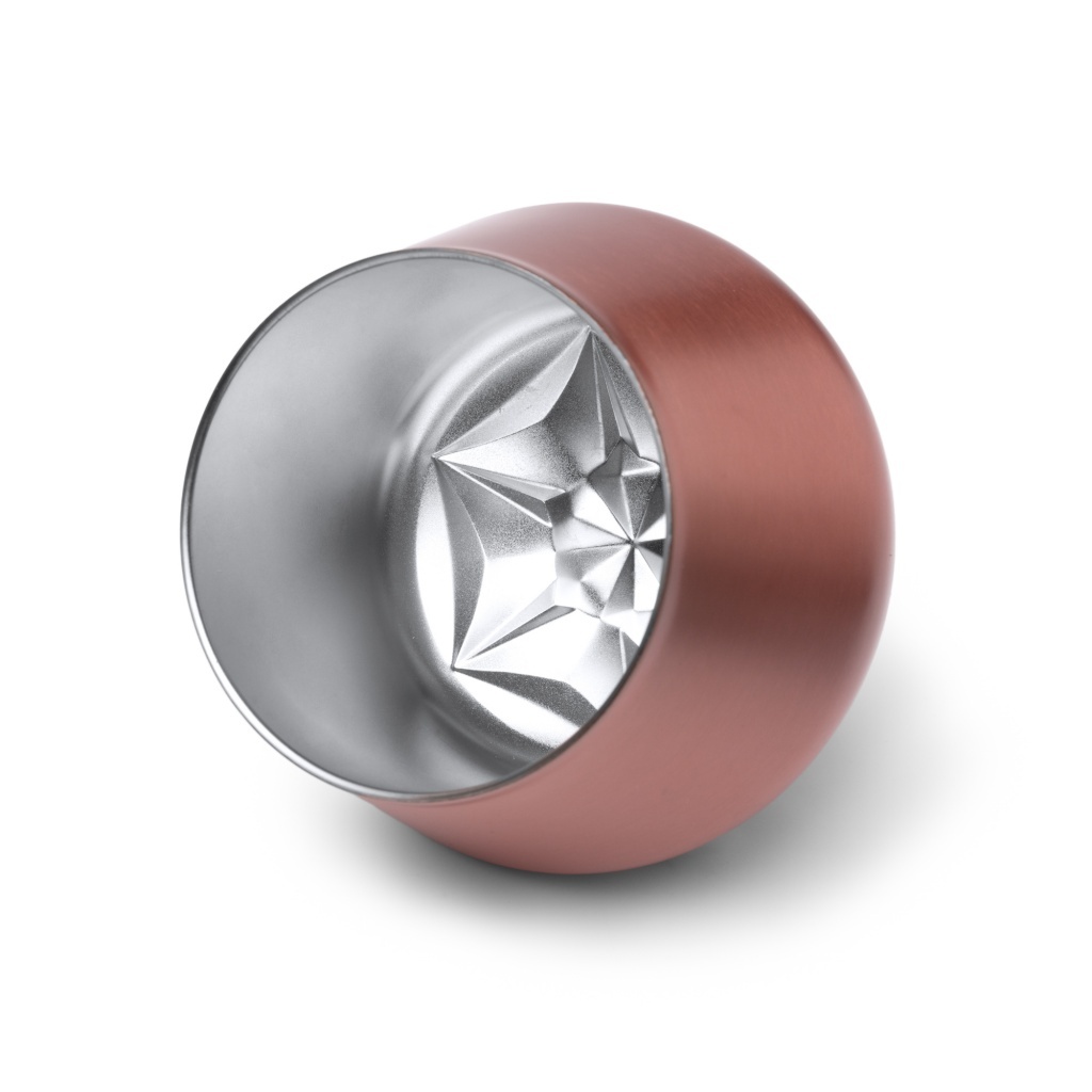 Kieliszek/kubek 2 w 1 wykonany ze stali nierdzewnej, z wyjmowaną, gwintowaną podstawą z polipropylenu. Pojemność: 380 ml. Oryginalny wzór zapewniający elegancki i wyrafinowany wygląd.