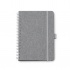 Notatnik A5 z twardą okładką z tkaniny poliestrowej RPET pochodzącej z recyklingu oraz podwójną spiralą. Wyposażony w elastyczne zapięcie na gumkę i dopasowany uchwyt na długopis. Zawiera 80 kartek w linie — idealny do uporządkowanych notatek.