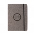 Notatnik w formacie A5 wykonany z tkaniny RPET, wyposażony w bezprzewodową ładowarkę o mocy 15 W. Posiada port USB typu C do zasilania oraz elastyczne zapięcie.