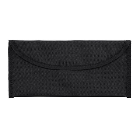 Praktyczna podróżna saszetka na dokumenty, zamykana na rzep i wyposażona w wygodny uchwyt na pasek.