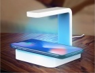 Urządzenie na biurko, które naładuje telefon, a światło UVC wysterylizuje jego powierzchnię.