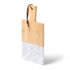 Deska do krojenia z naturalnego marmuru i bambusa. W zestawie pasek na ramię wykonany ze sztucznej skóry.