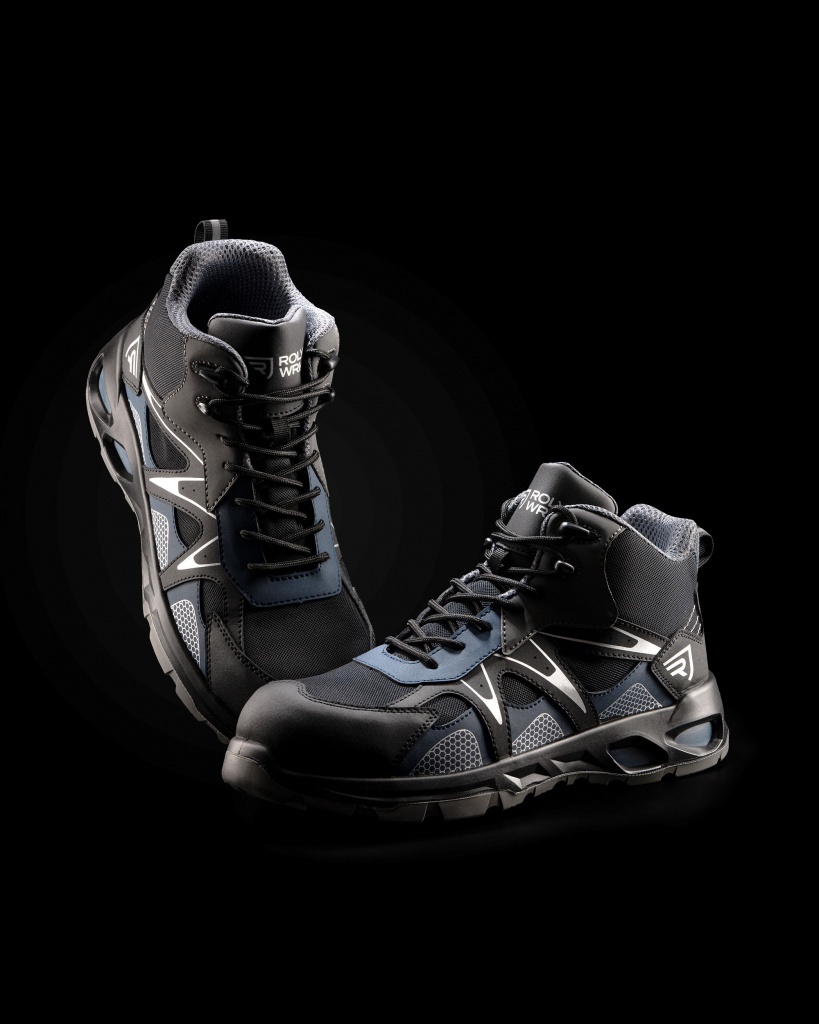 Robocze buty za kostkę w sportowym stylu z 3D siatką z tkaniny, lekkie i dobrze wyważone, przeznaczone do pracy w wymagających warunkach.