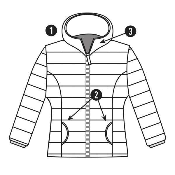 1. Kontrastowy zamek błyskawiczny z osłoną podbródka.