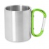 Metalowy kubek z podwójną ścianką i karabińczykiem, dostępny w różnych kolorach. Pojemność 220 ml. Pakowanie jednostkowe w białe pudełko z kartonu.