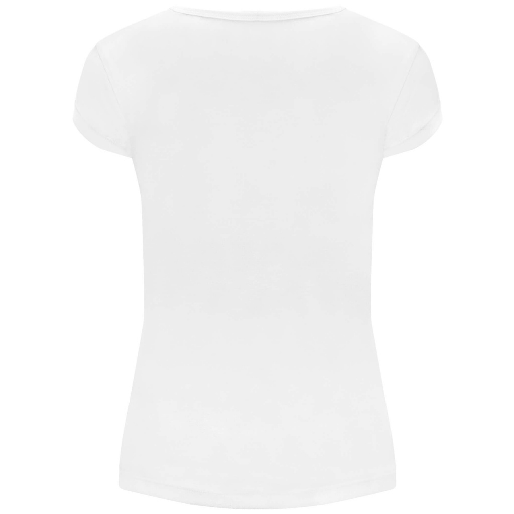 Koszulka z krótkim rękawem o dopasowanym kroju. Okrągły dekolt z tej samej tkaniny, boczne szwy. Wykonana z tkaniny poliestrowej przypominającej w dotyku bawełnę.