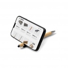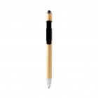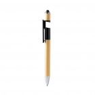 Długopis wyposażony w antystresowy spinner, bambusowy korpus z uchwytem na smartfon, z rysikiem i metalicznym wykończeniem. Niebieski tusz.