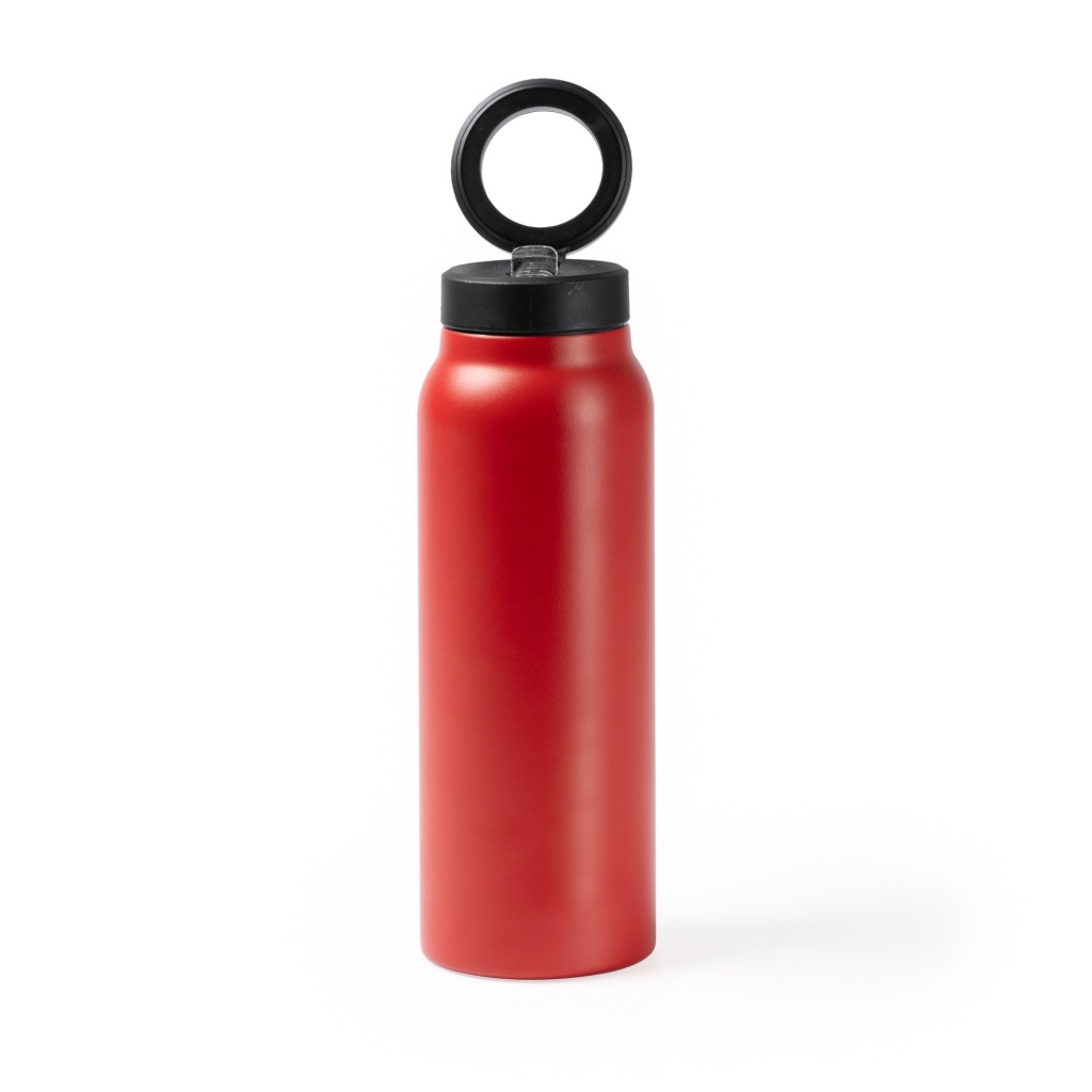 Termiczna butelka z podwójnymi ściankami, wykonana z recyklingowanej stali nierdzewnej 304. Wyposażona w pokrywkę z magnetycznym pierścieniem do mocowania telefonu, składana słomka oraz antypoślizgową gumę w podstawie.