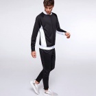 Długie spodnie treningowe z elastycznym pasem i wewnętrznymi ściągaczami. Kieszenie boczne. Ściągacze w nogawkach oraz zamek.