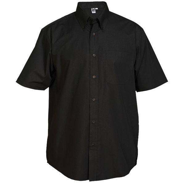 Męska koszula z krótkim rękawem uszyta z popeliny. Posiada klasyczny, krochmalony kołnierzyk z guziczkiem oraz kieszeń na lewej piersi. Zapięcie na siedem guzików w kolorze tkaniny. Wyprofilowany dolny brzeg zapewnia estetyczny wygląd i komfort noszenia. Prosta w użytkowaniu i pielęgnacji.