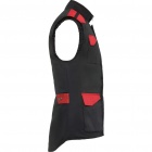 Wielobarwna kamizelka robocza z licznymi kieszeniami i wysokim kołnierzem — praktyczna i wygodna podczas pracy.