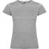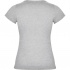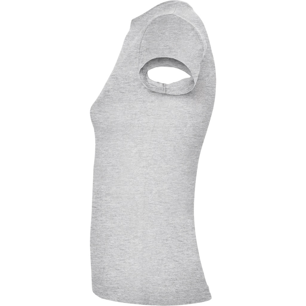 Dopasowana koszulka damska. Zaokrąglony, dwuwarstwowy ściągacz przy szyi, typowo damski fason. Wzmocnione, kryte szwy przy kołnierzyku i na ramionach, szwy boczne.