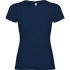 Dopasowana koszulka damska. Zaokrąglony, dwuwarstwowy ściągacz przy szyi, typowo damski fason. Wzmocnione, kryte szwy przy kołnierzyku i na ramionach, szwy boczne.